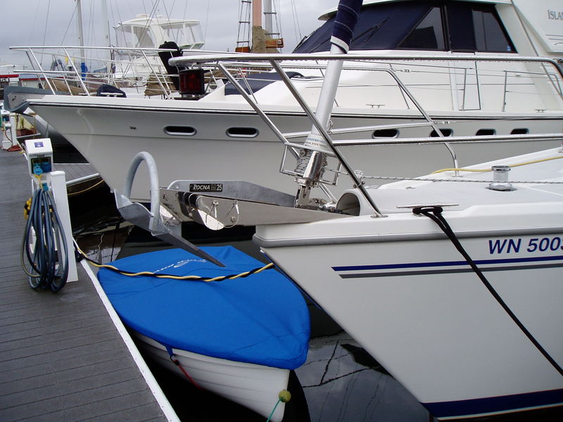 Rocna 25 went on with no modifications at all, and self launches unlike the Bruce it replaces. Owner plans to replace the retaining pin with a long shackle pad lock.