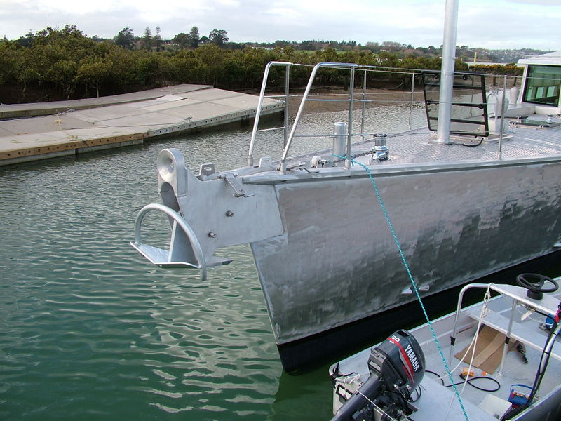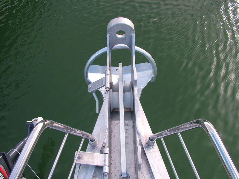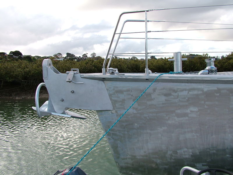 The anchor on this boat was customized slightly to accommodate a roller design which was originally intended exclusively for a Bruce type. Newer FPB series are designed for large Rocna anchors.