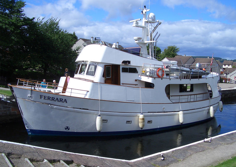 Ferrara was built in Norfolk UK in 1972 by a company called Herbert Woods (no longer trading), to a conventional fishing boat hull design. The new anchoring system pictured here was fitted as part of a full refit of the yacht in 2007–2008.